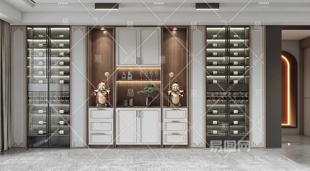 新中式酒柜3D模型下载