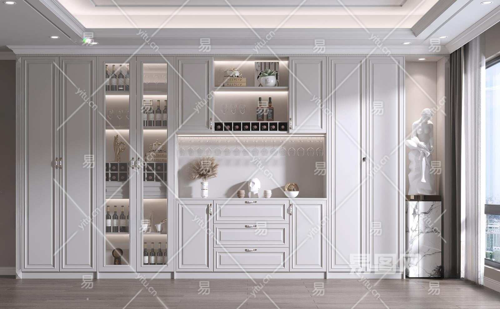 美式酒柜3D模型下载
