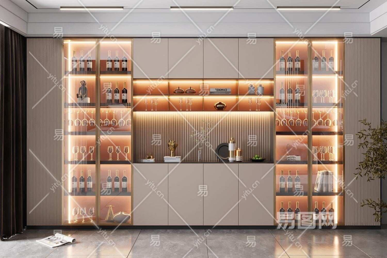现代酒柜3D模型下载