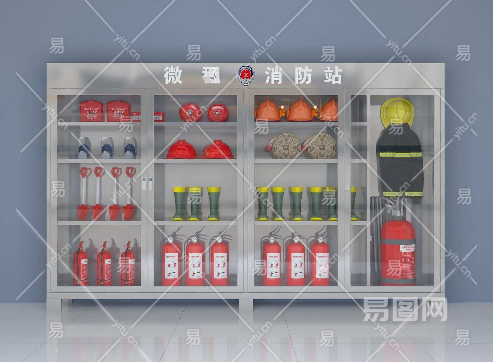 现代消防柜3D模型下载