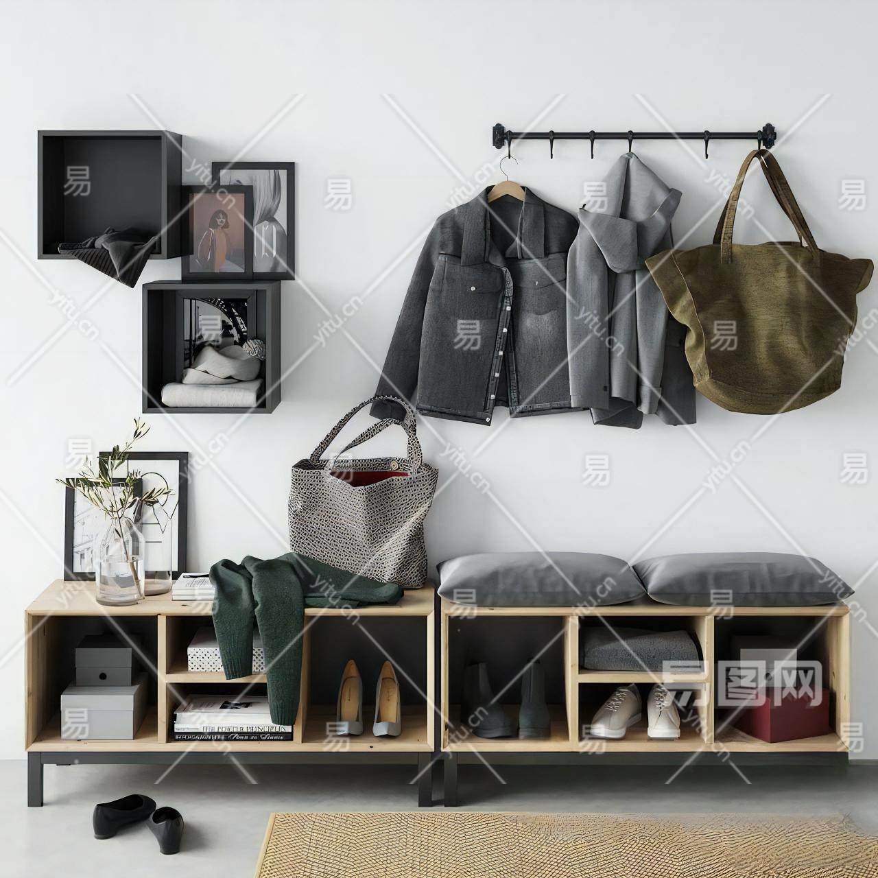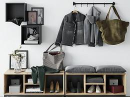 现代衣服 包 枕头鞋柜组合