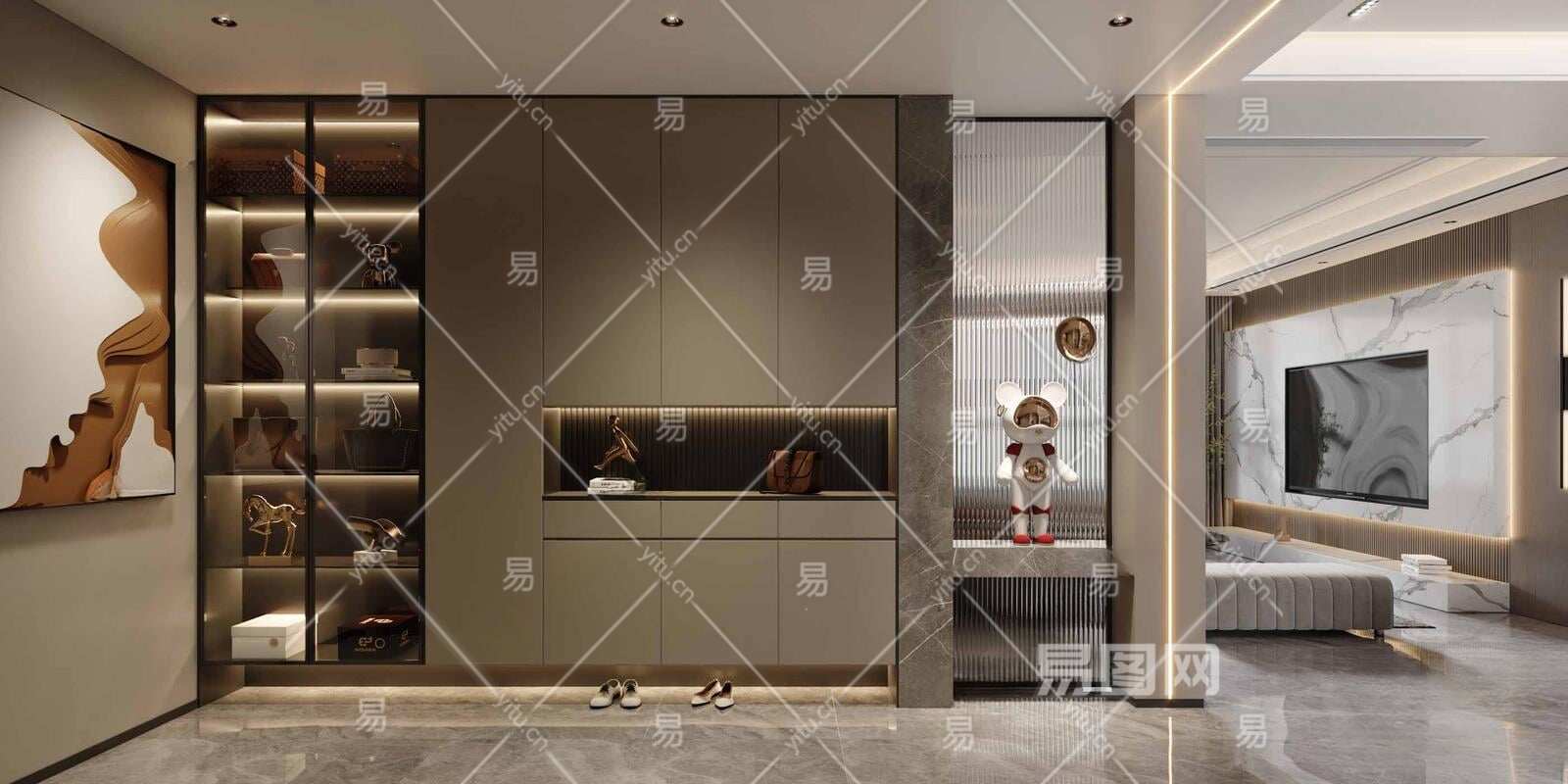 现代鞋柜3D模型下载