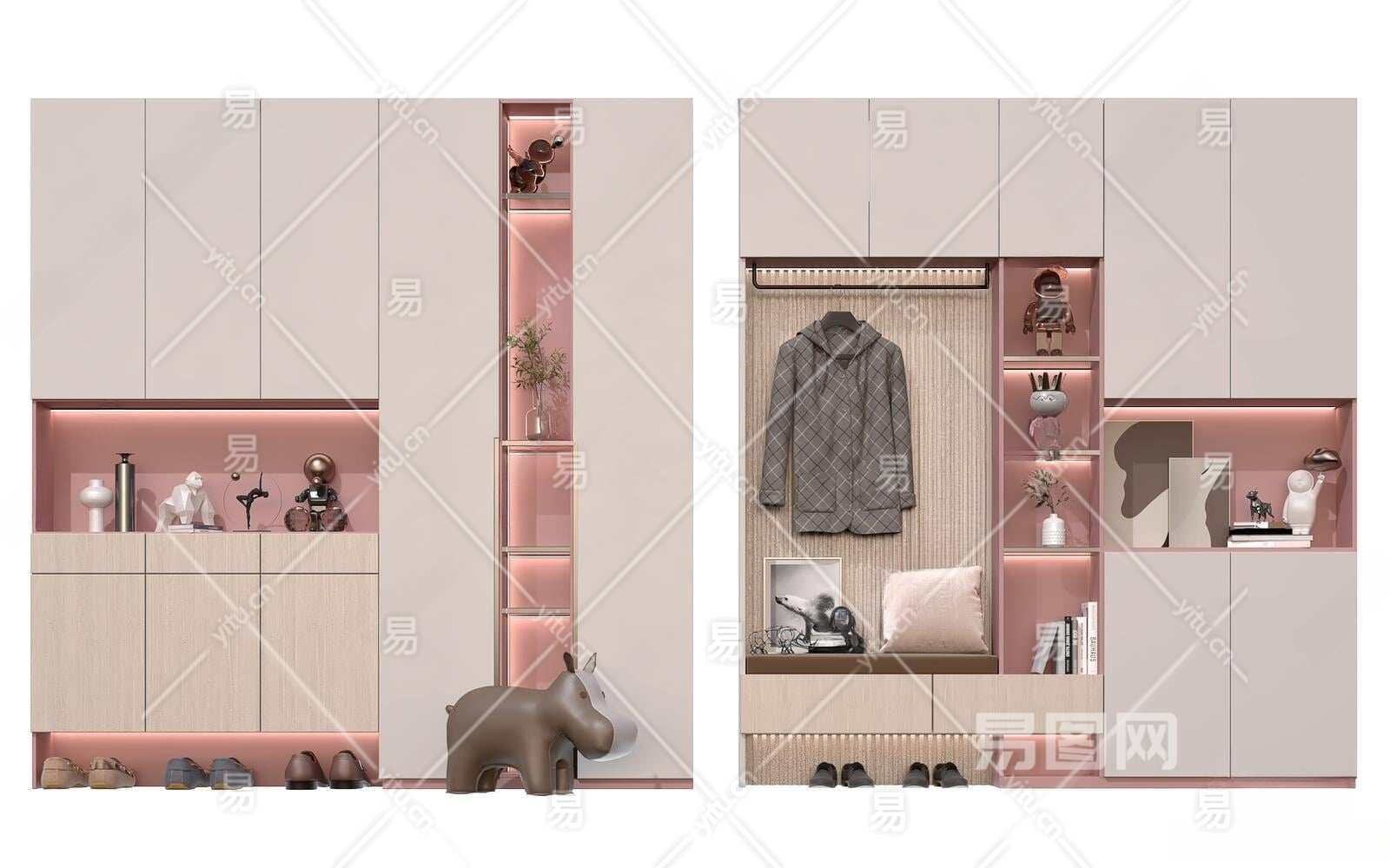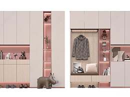 现代樱花粉入户鞋柜3D模型下载