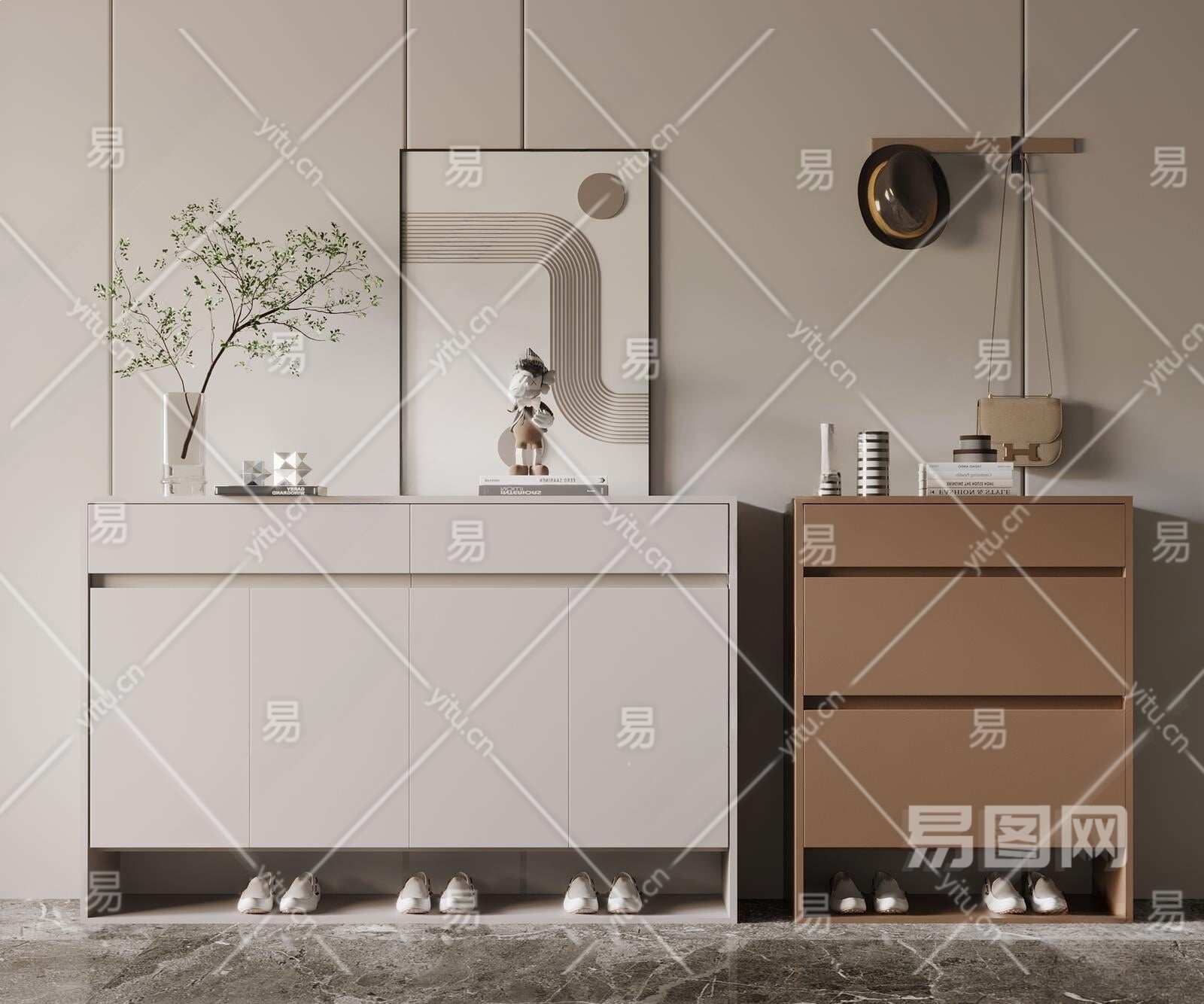 现代鞋柜3D模型下载
