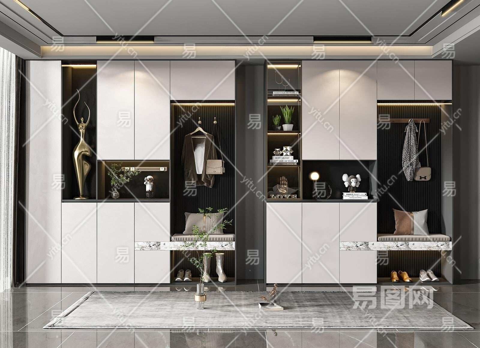 现代鞋柜3D模型下载