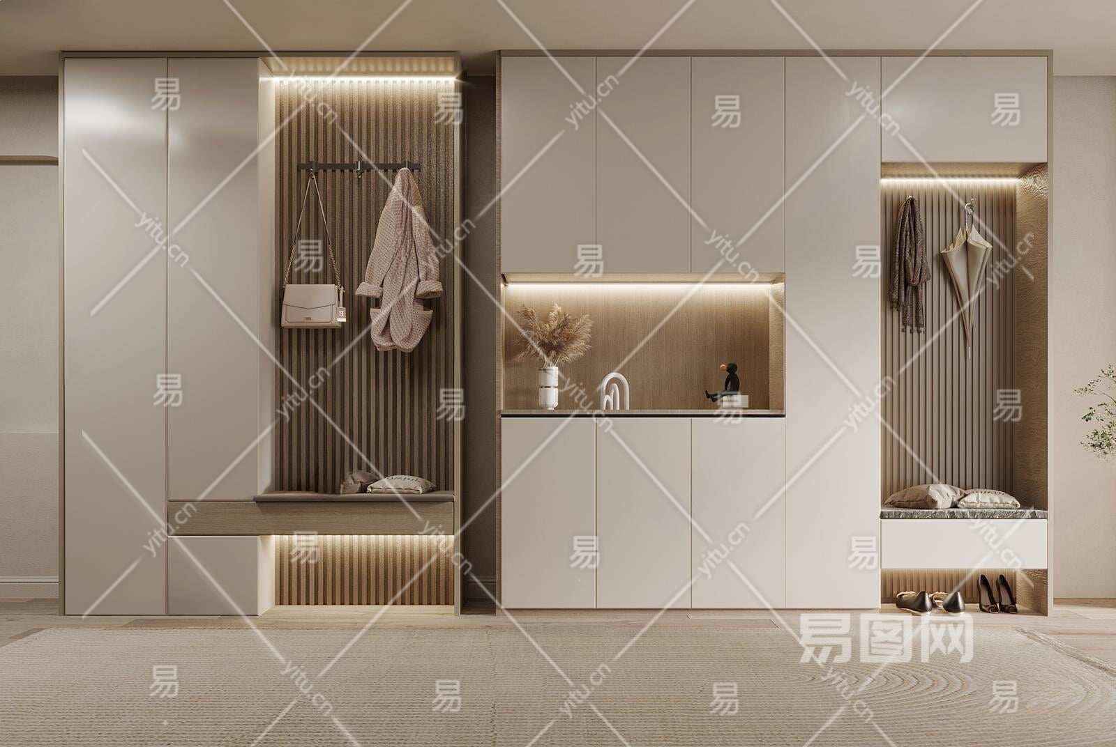 现代鞋柜3D模型下载