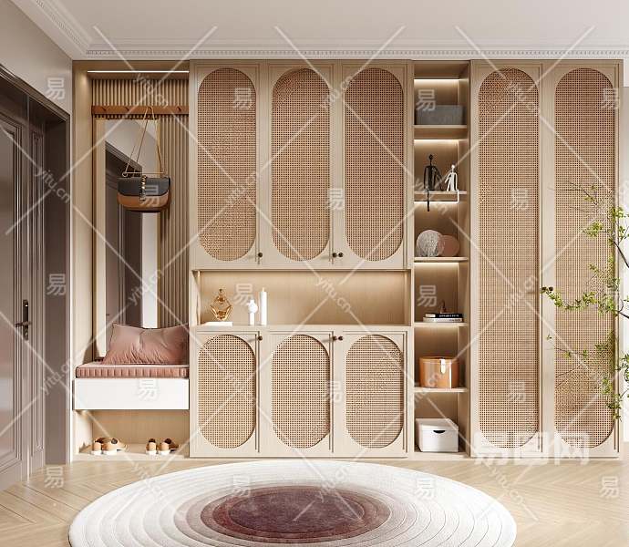 侘寂风鞋柜3D模型下载