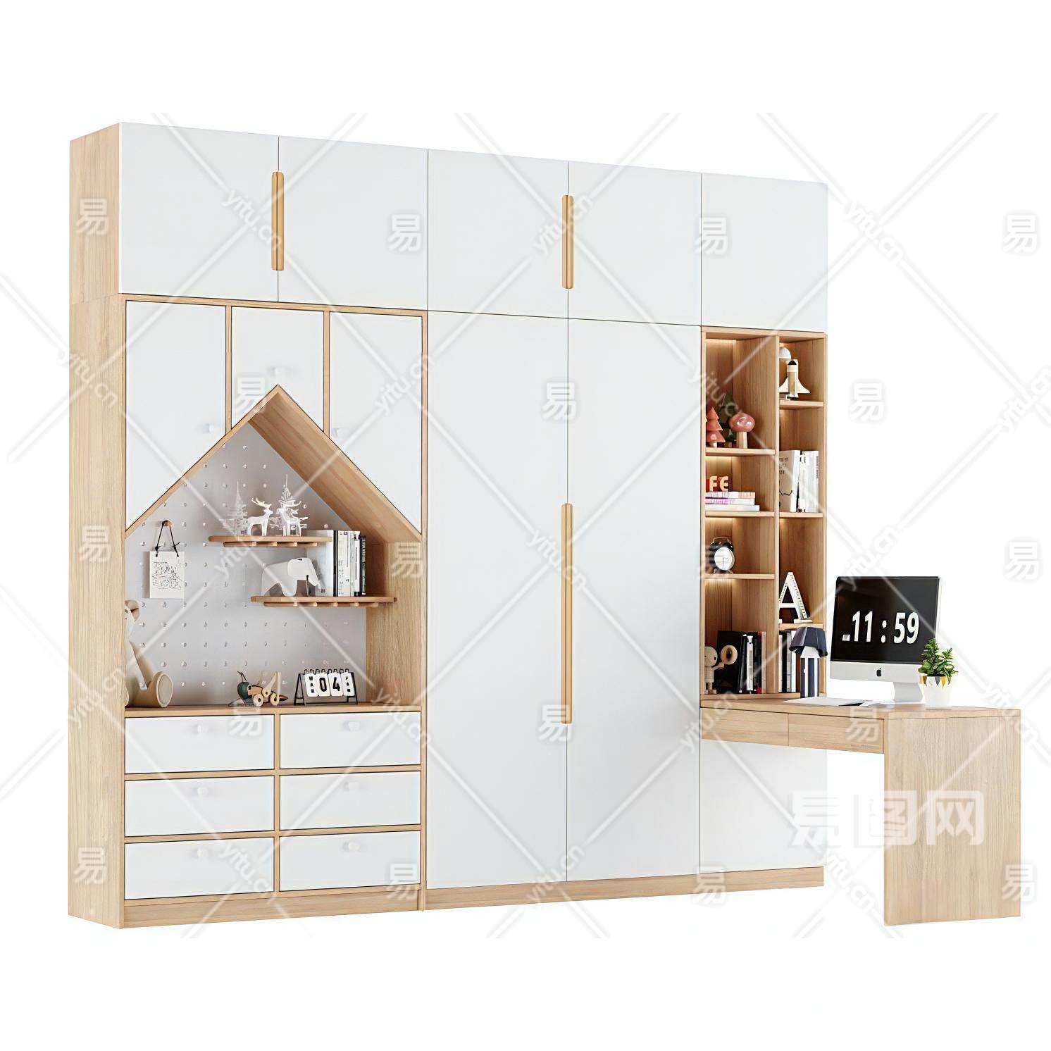 当前的位置:首页 > 3D模型 > 柜子 > 书柜 > 现代儿童衣柜 书桌