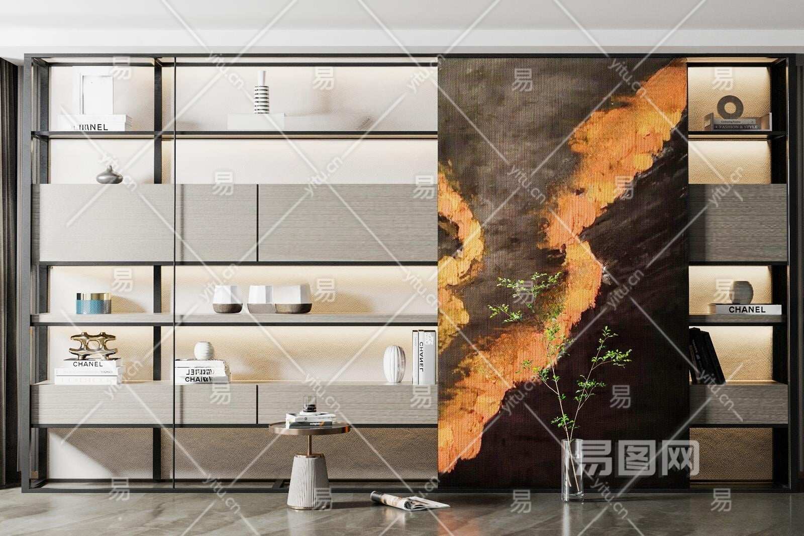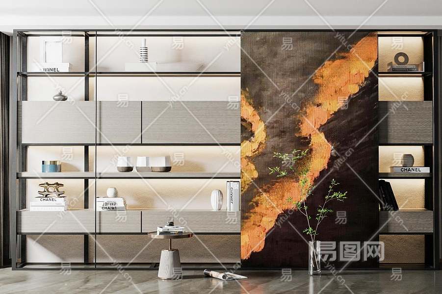 现代书柜3D模型下载
