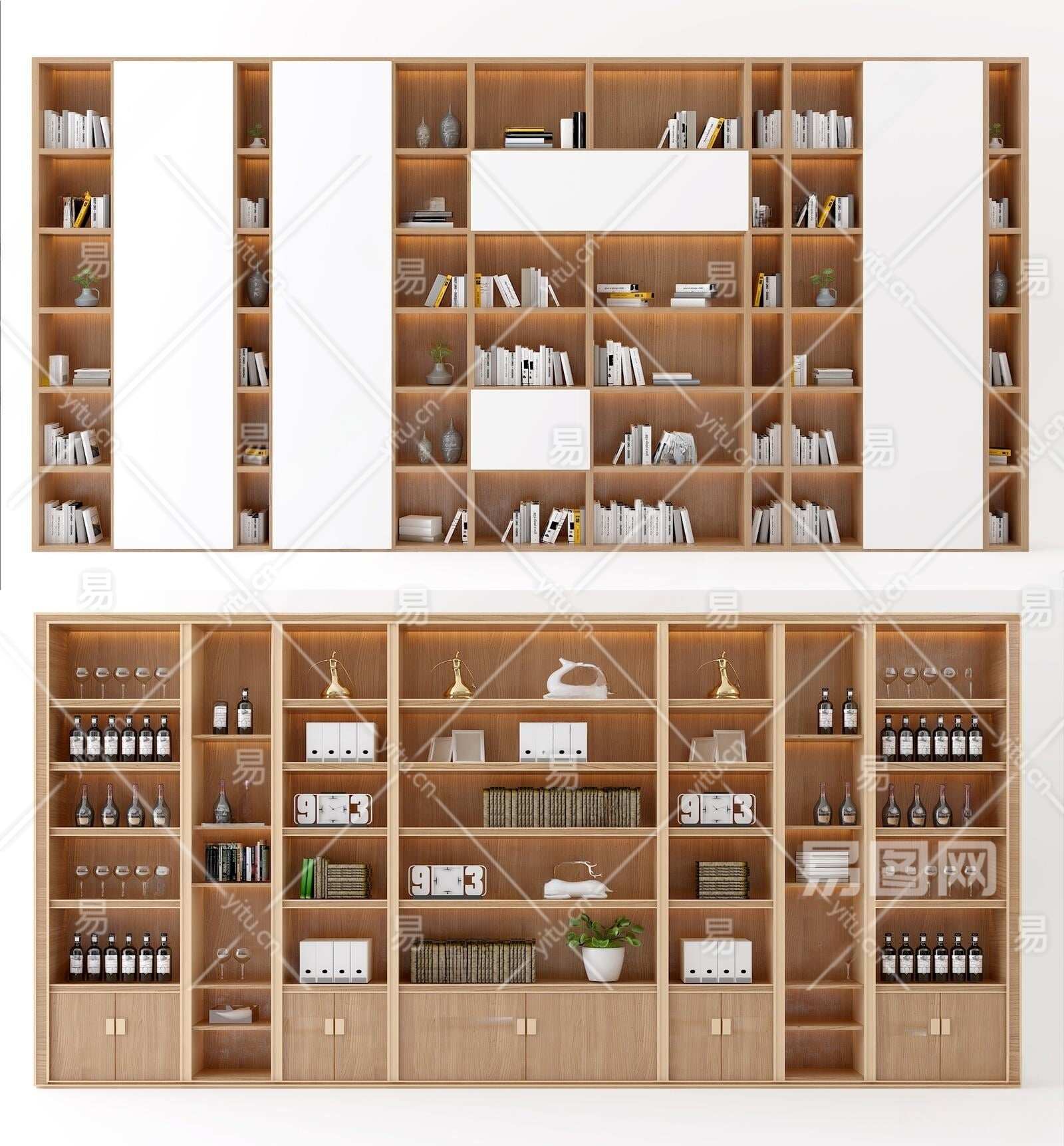 新中式书柜3D模型下载