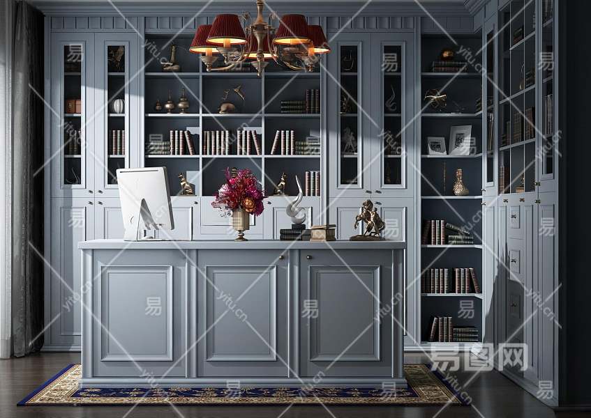 欧式书柜3D模型下载