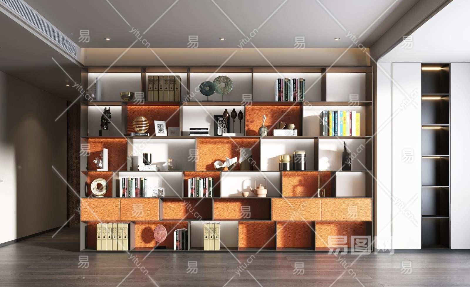 现代书柜3D模型下载