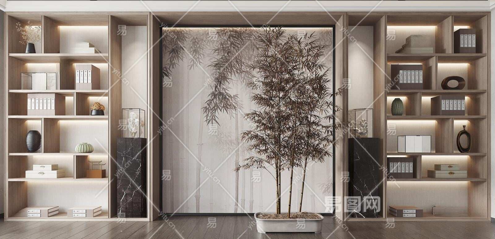 新中式书柜3D模型下载