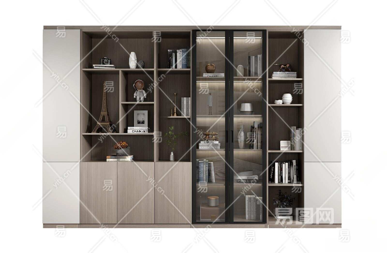 现代书柜3D模型下载
