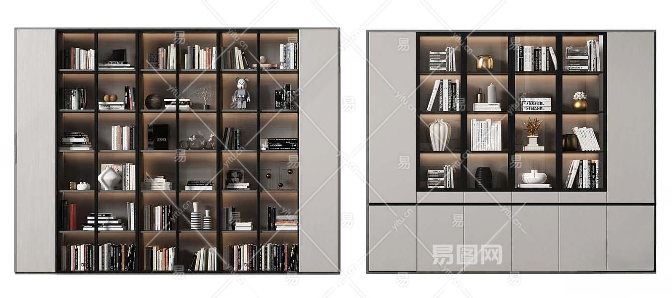 现代书柜3D模型下载