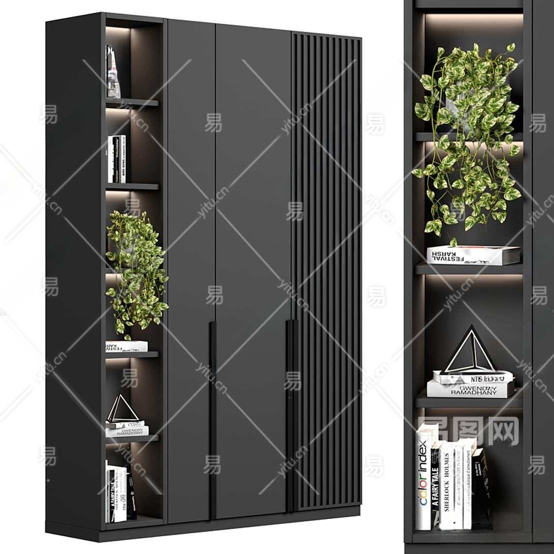 现代书柜3D模型下载