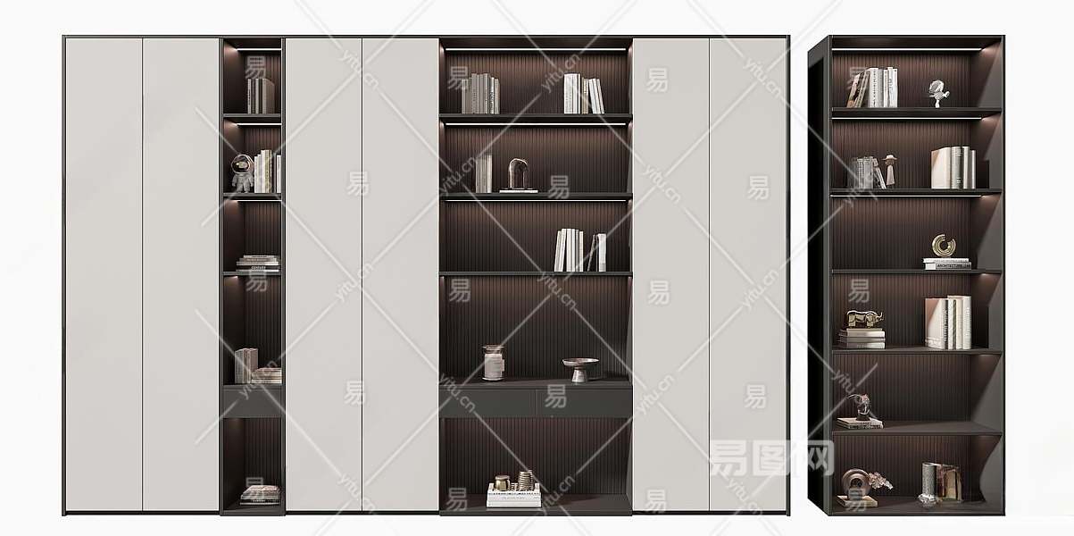 现代书柜3D模型下载