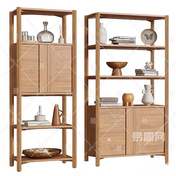 侘寂风书柜3D模型下载