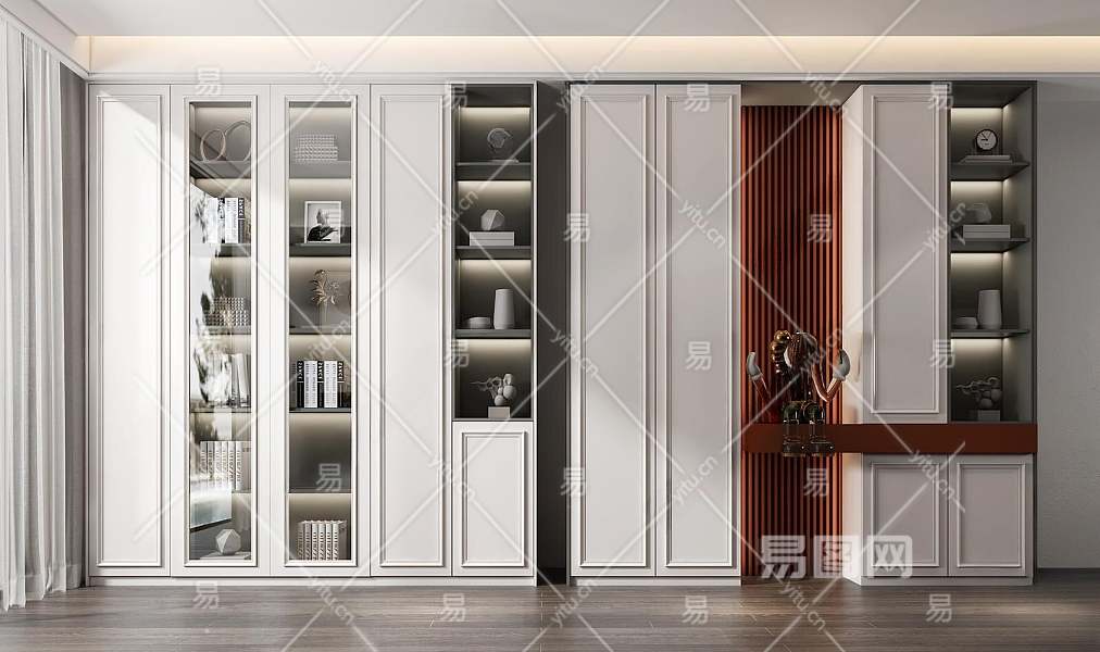 简欧书柜3D模型下载