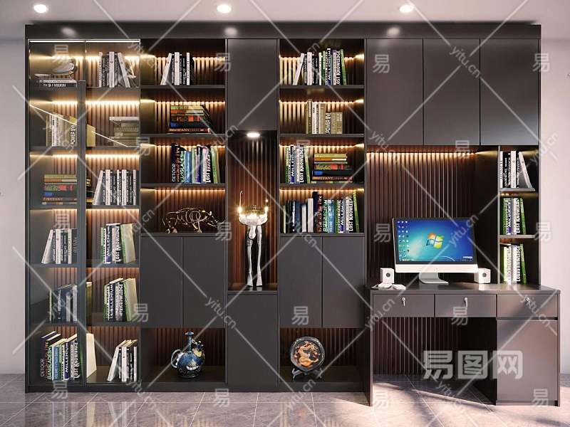 现代书柜3D模型下载