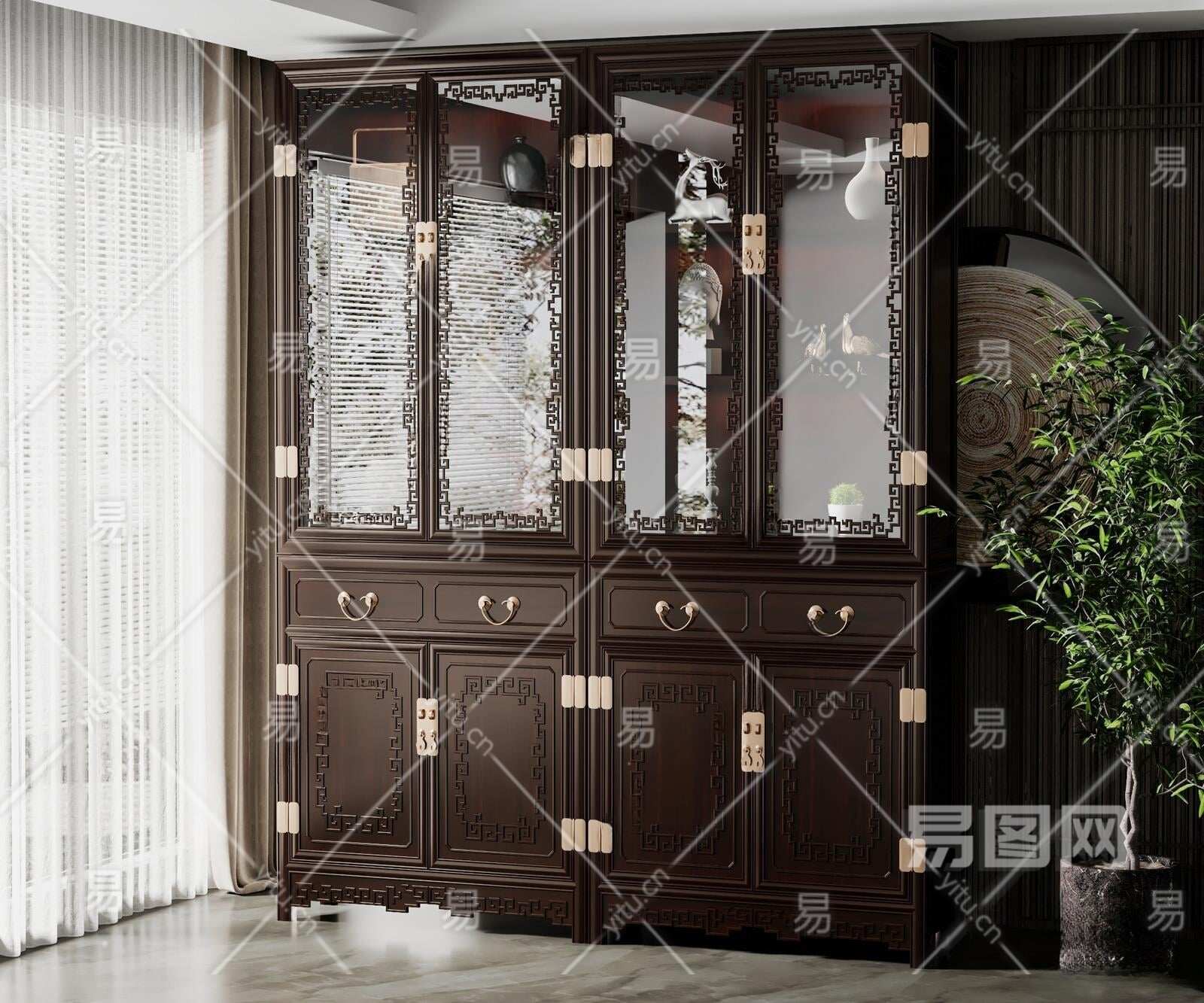 新中式书柜3D模型下载