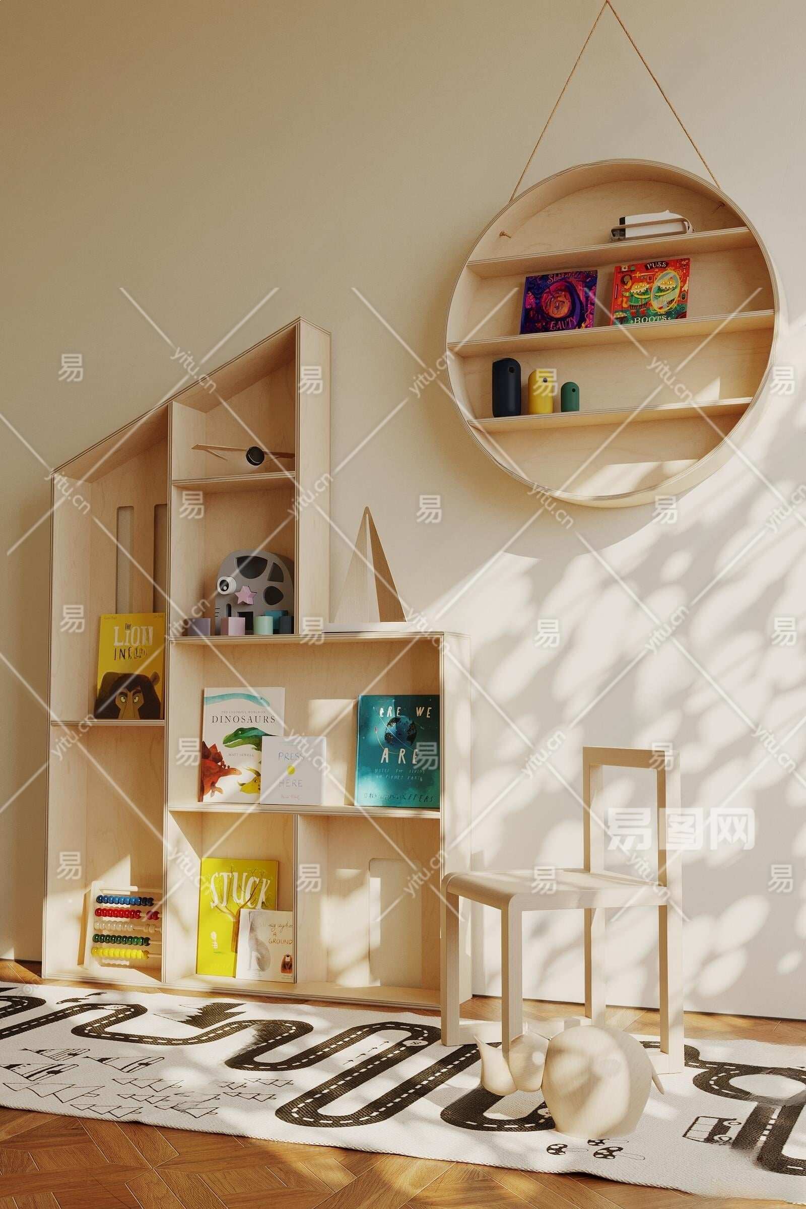 现代儿童绘本书柜3D模型下载