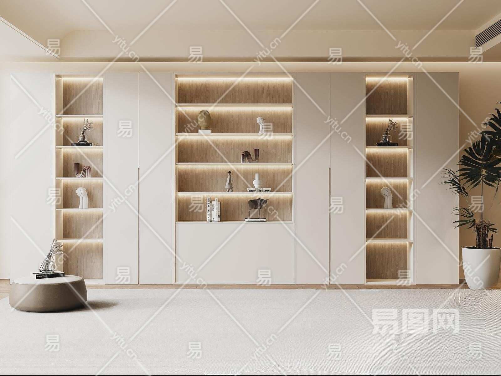 现代书柜3D模型下载