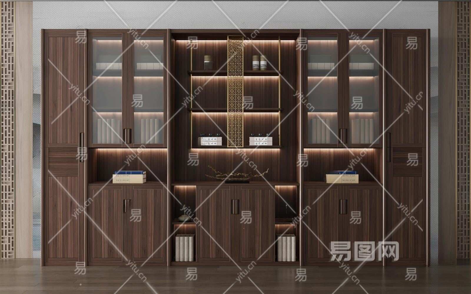 新中式书柜3D模型下载