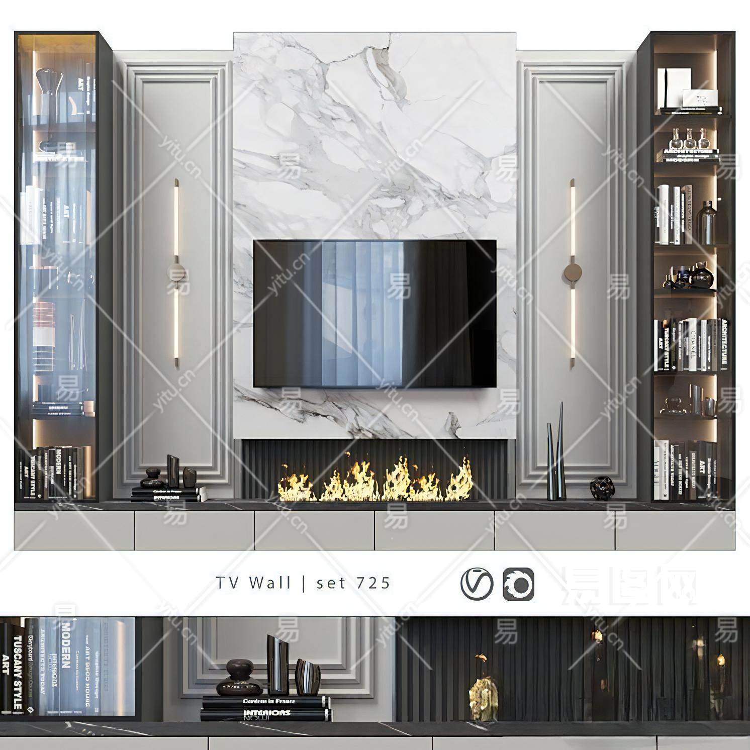 当前的位置:首页 > 3D模型 > 柜子 > 电视柜 > 现代电视墙 电视柜 壁炉