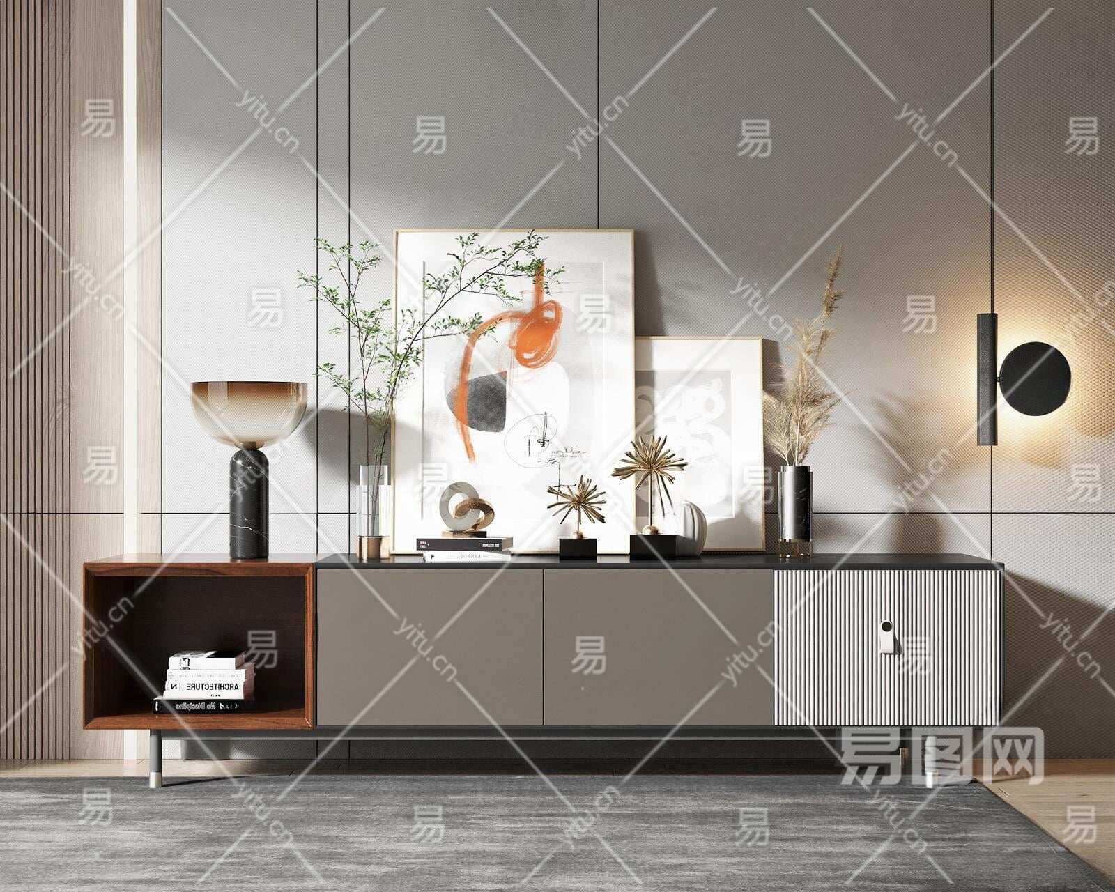 现代电视柜3D模型下载