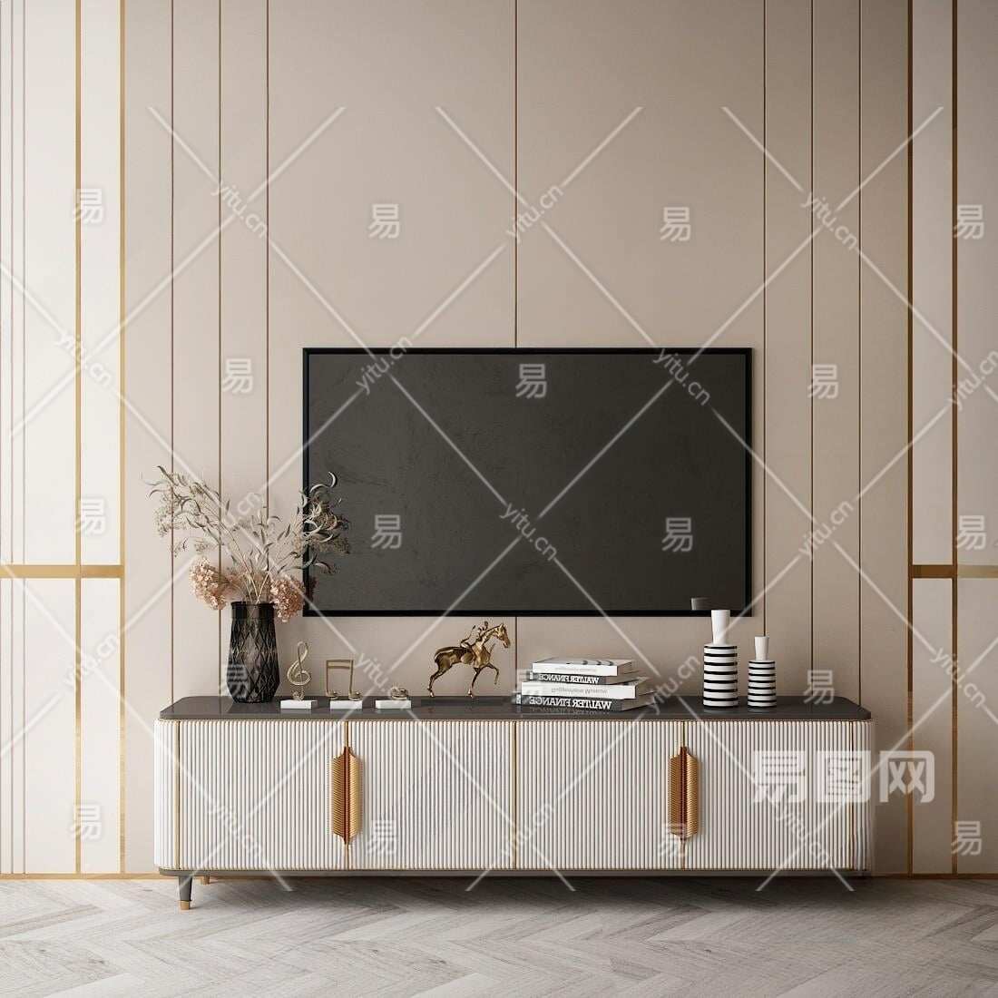 现代电视机柜3D模型下载