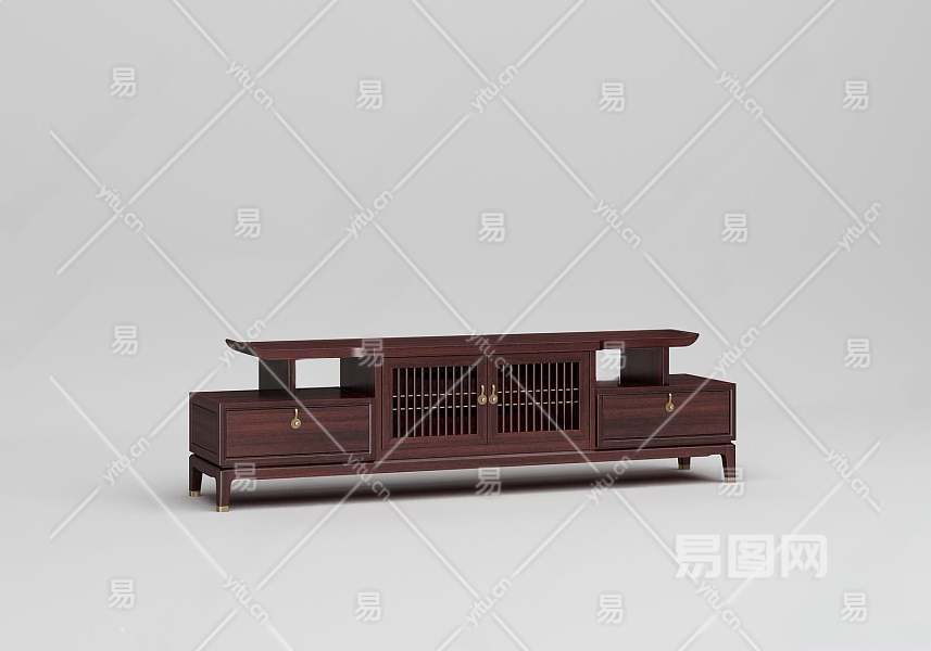 新中式电视柜3D模型下载