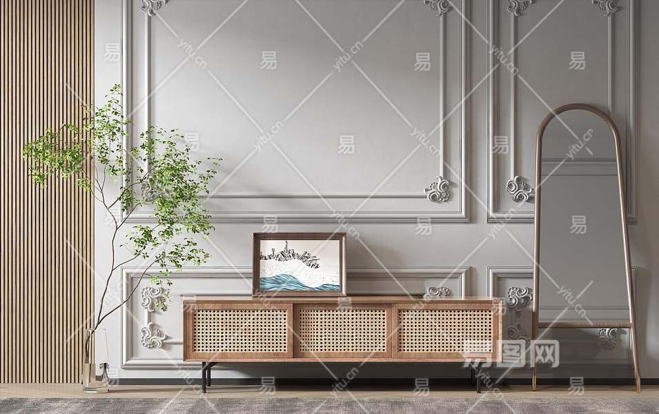 侘寂风电视柜3D模型下载