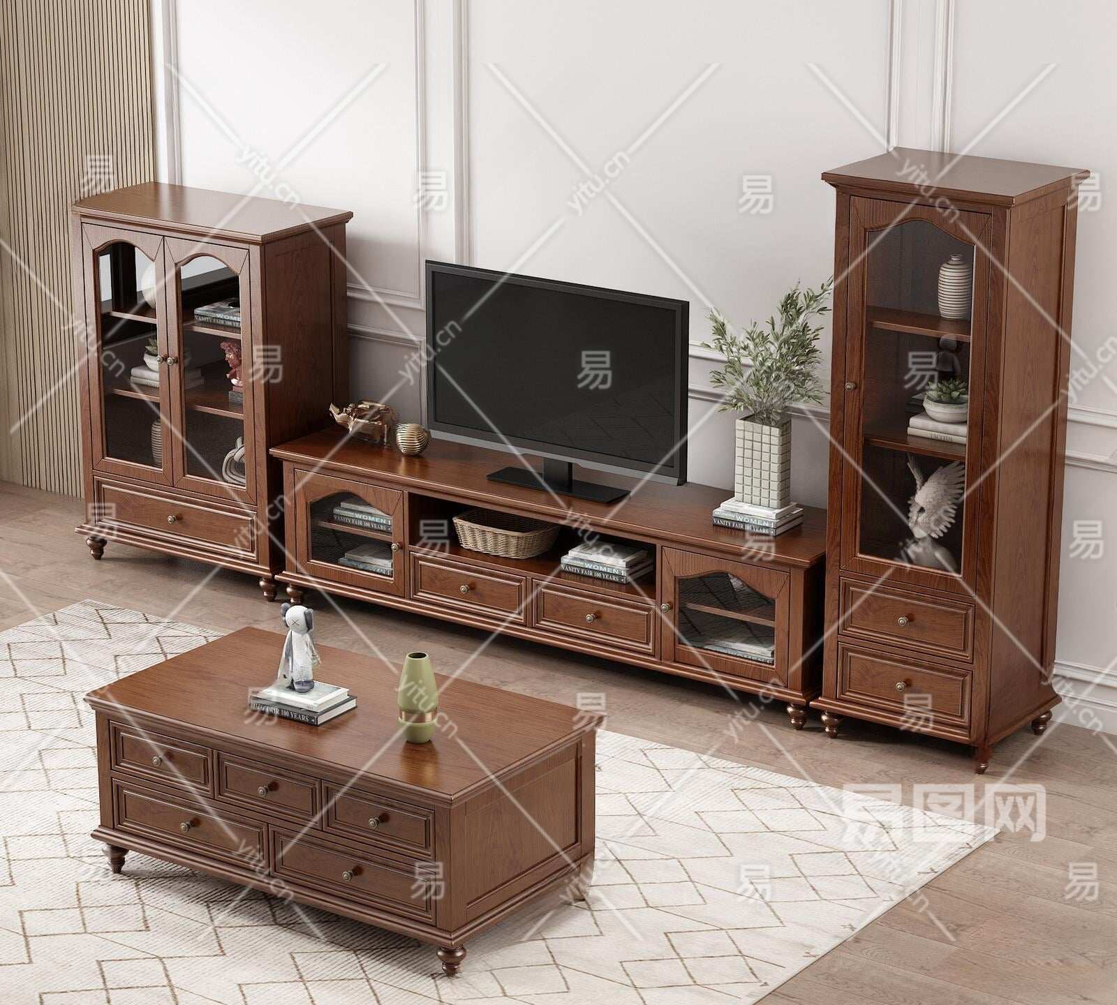 美式电视柜3D模型下载