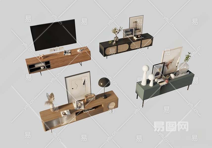北欧电视柜3D模型下载