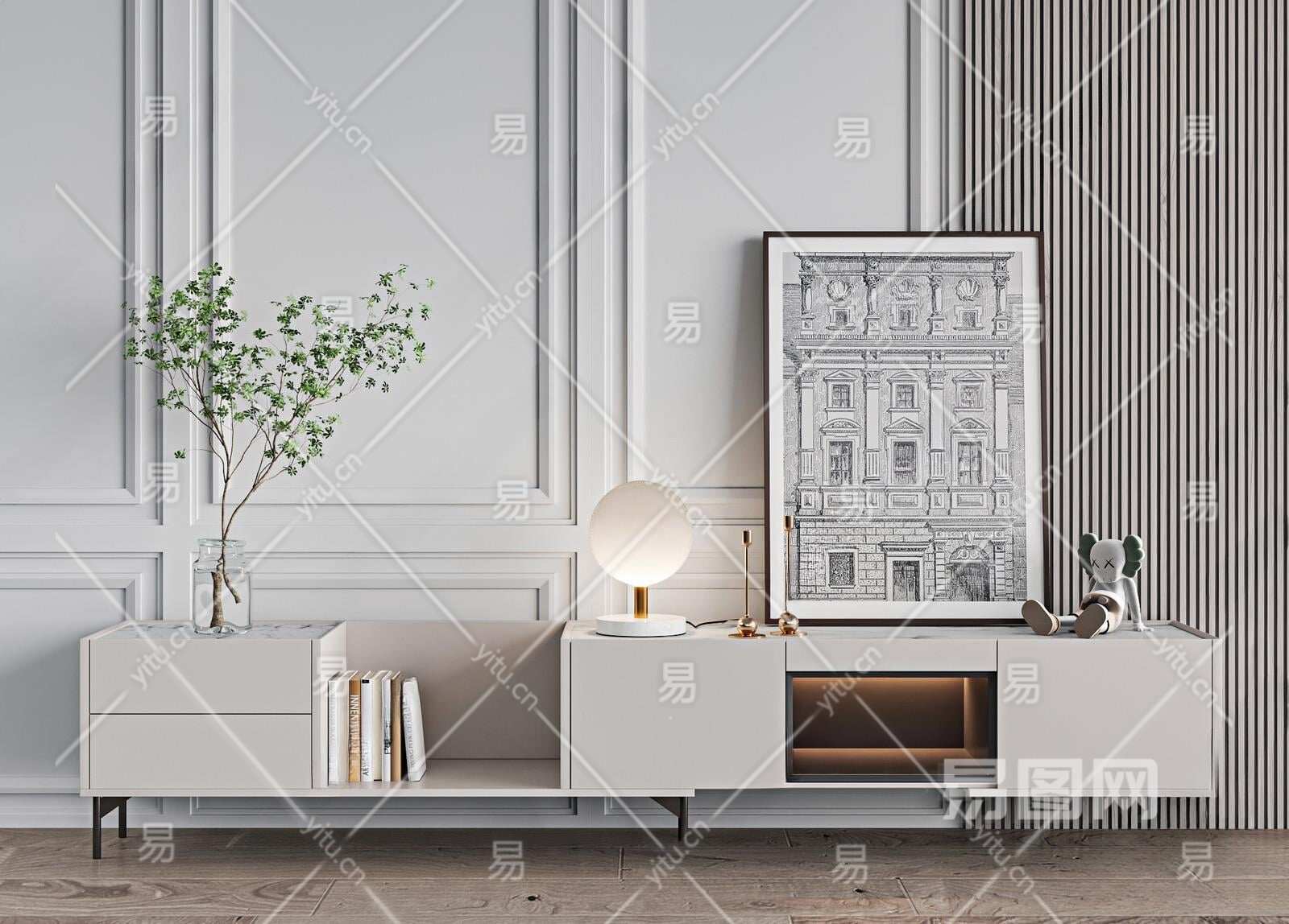 现代电视柜3D模型下载