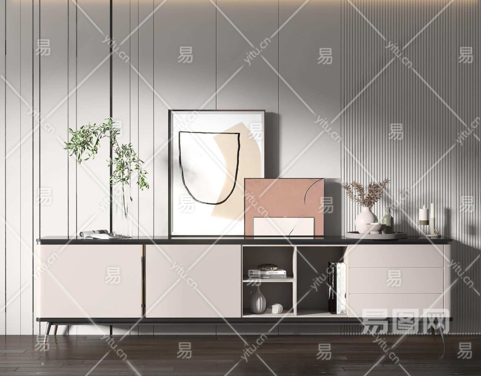 现代电视柜3D模型下载