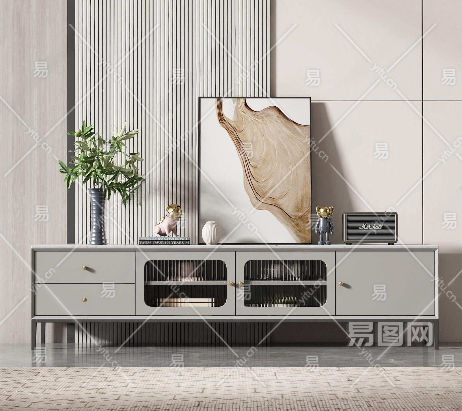 现代电视柜3D模型下载