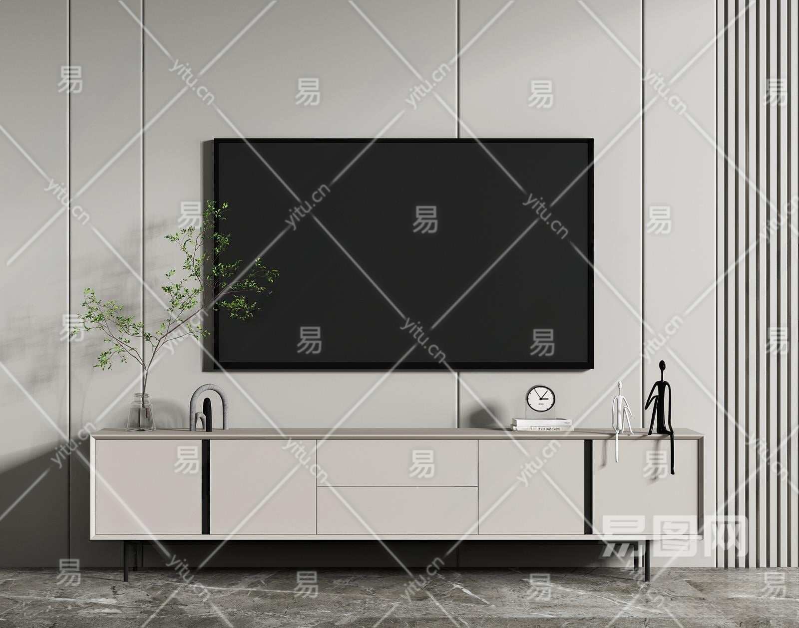 现代电视柜3D模型下载