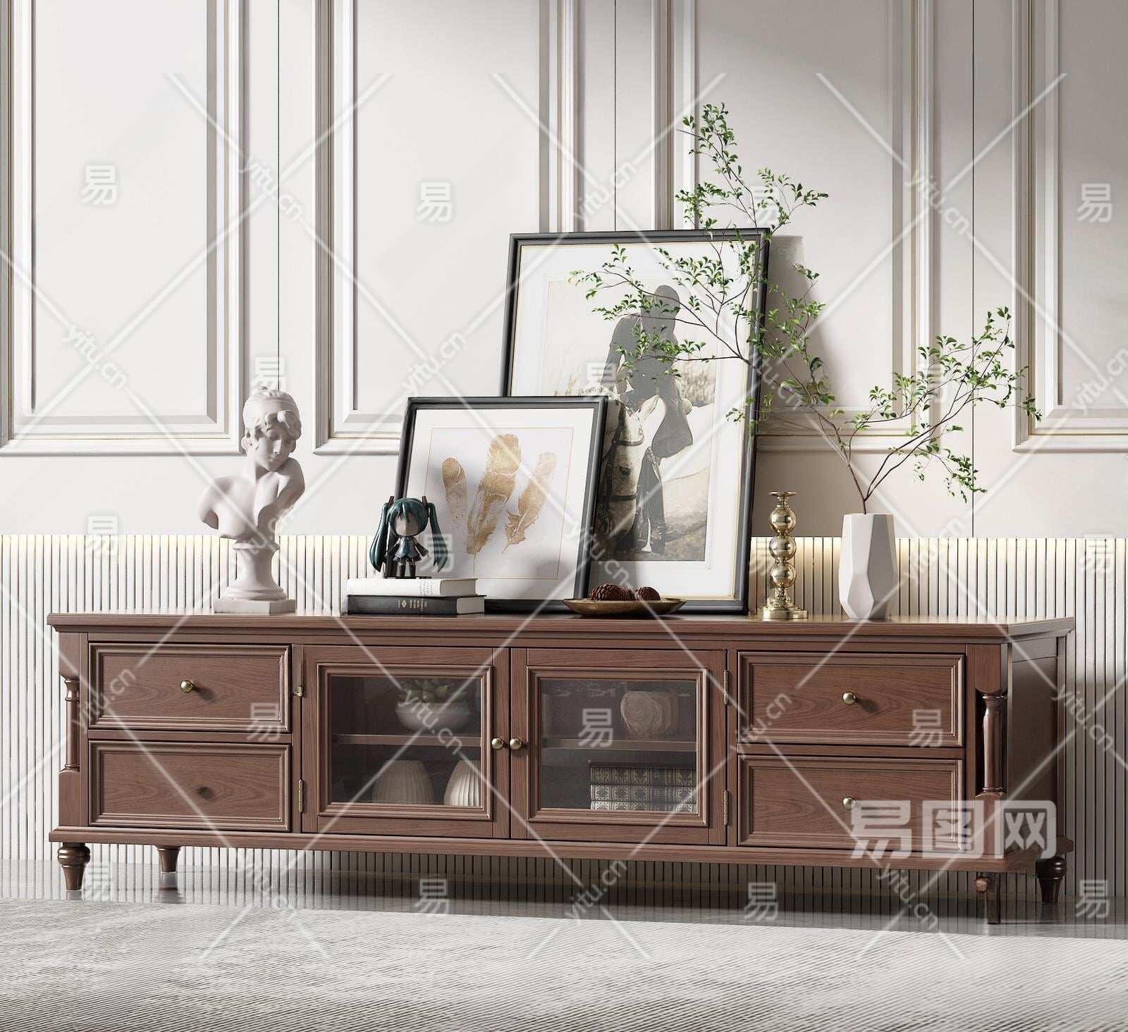 美式电视柜3D模型下载