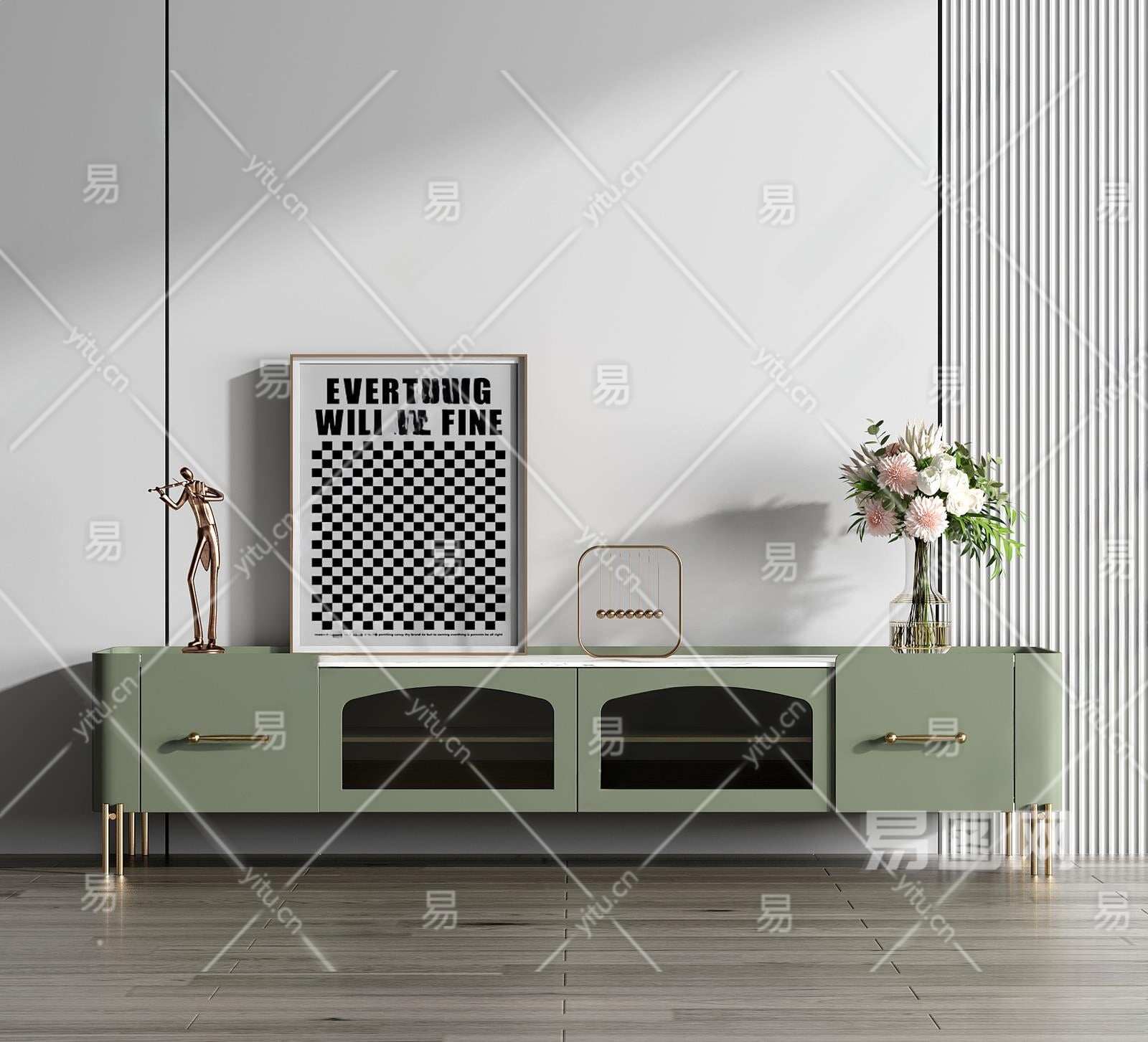 现代电视柜3D模型下载