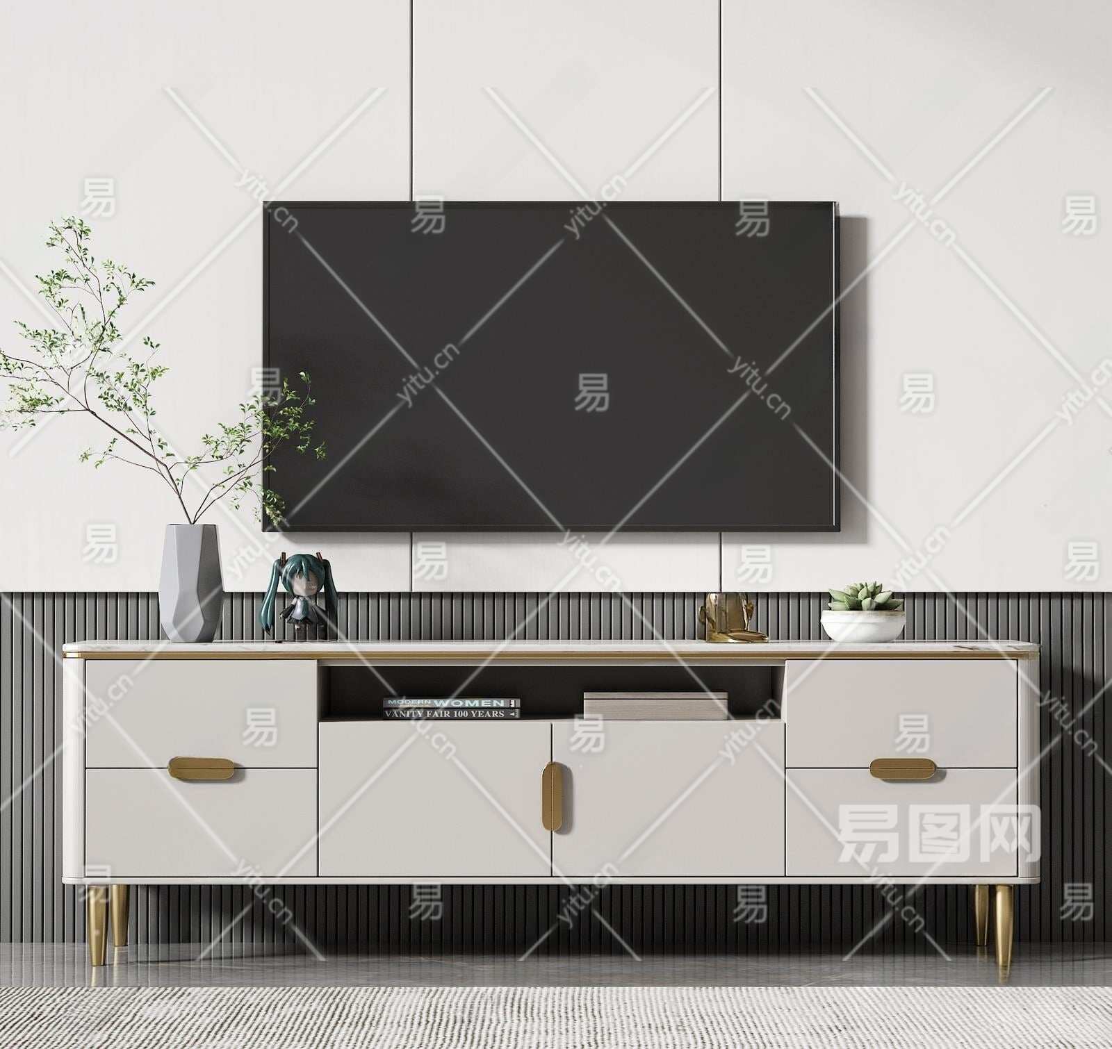 现代电视柜3D模型下载