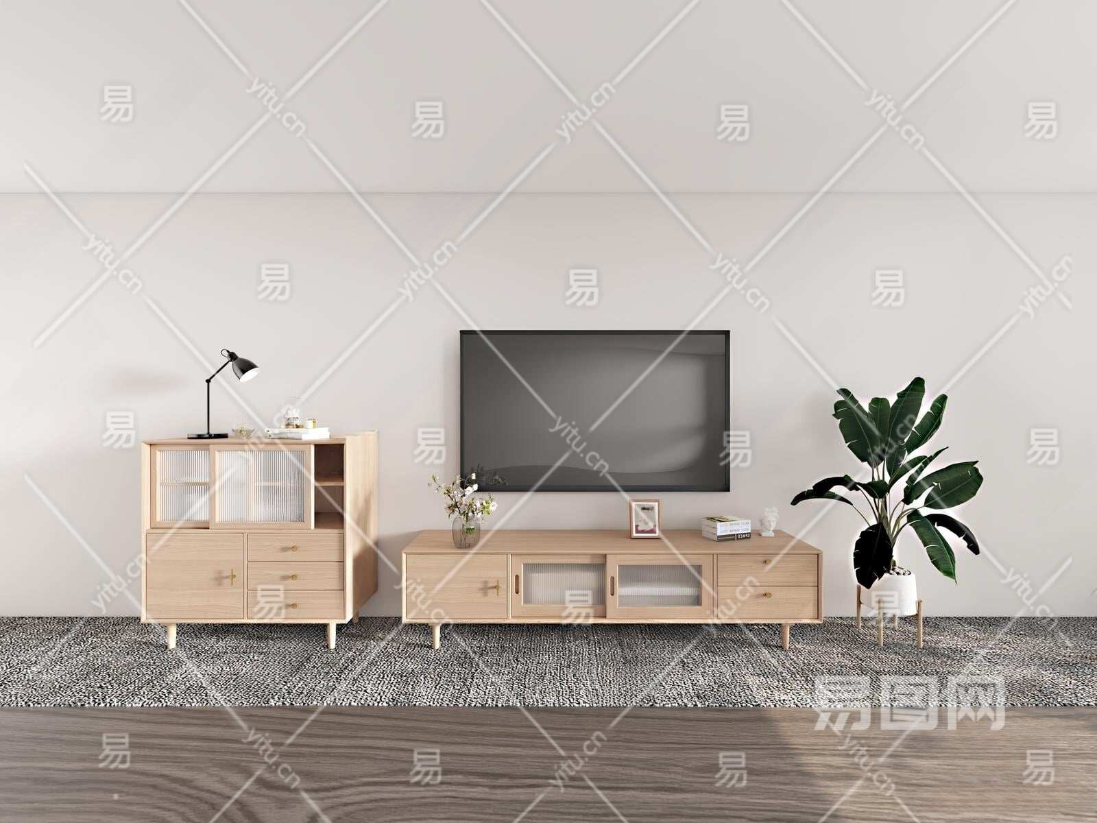 日式电视柜3D模型下载