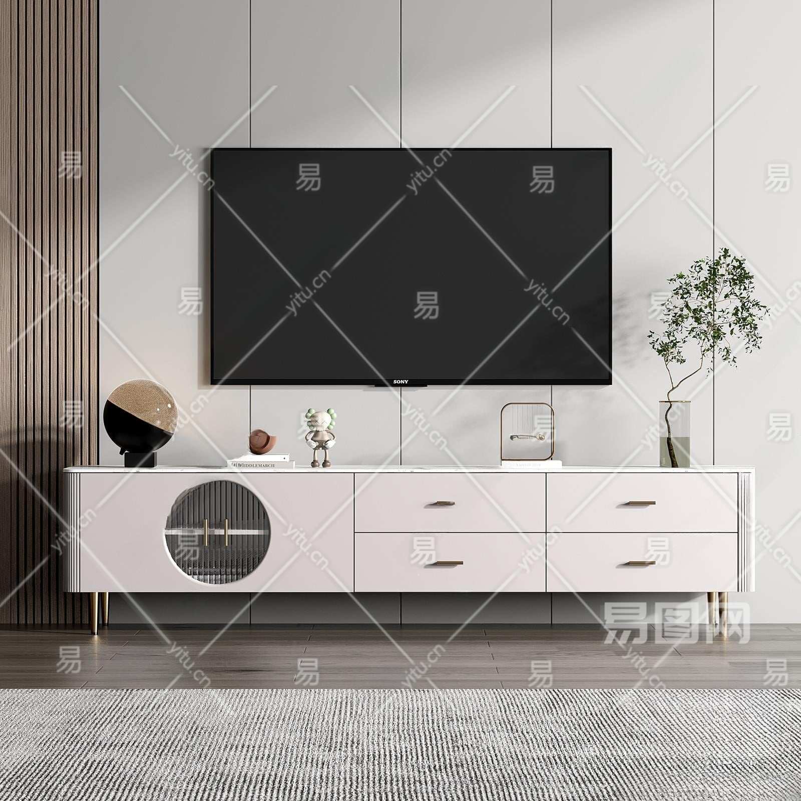 现代电视柜3D模型下载