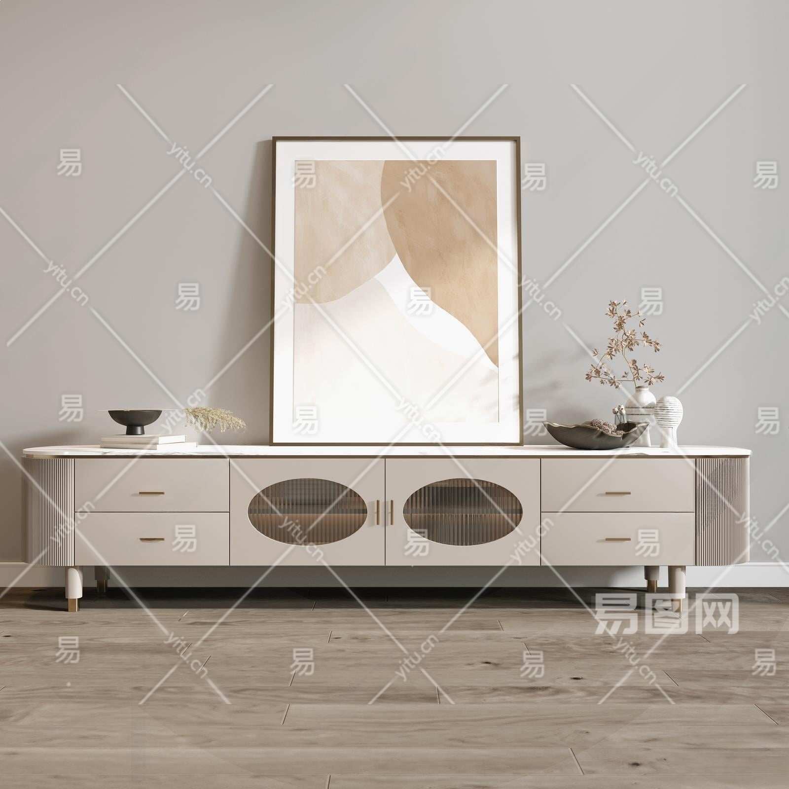 现代电视柜3D模型下载