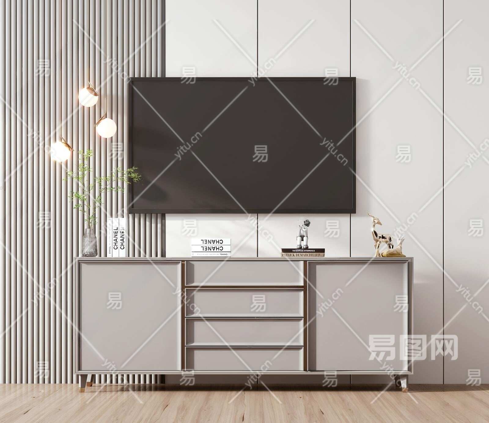 现代电视柜3D模型下载
