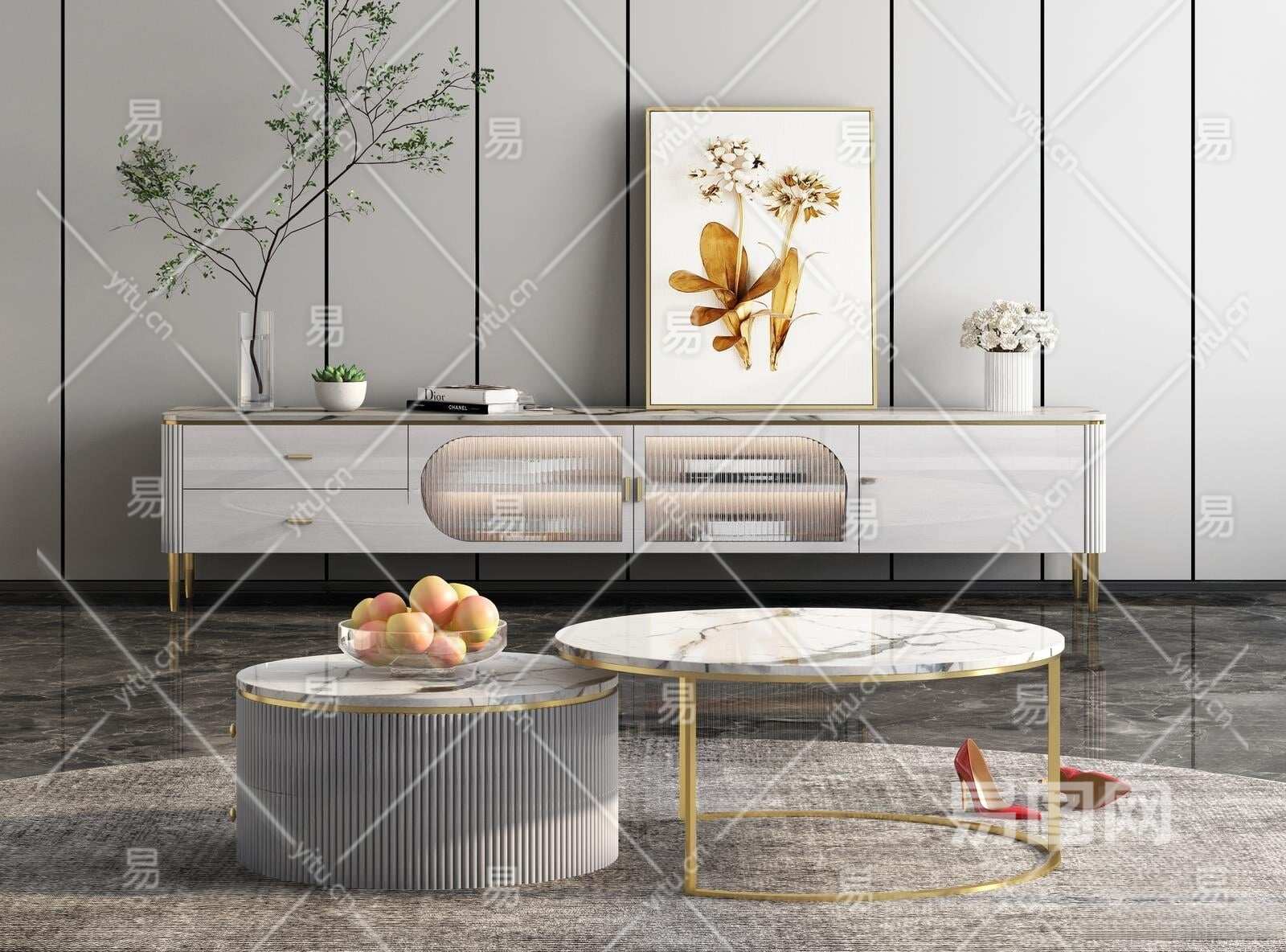 简欧电视柜3D模型下载