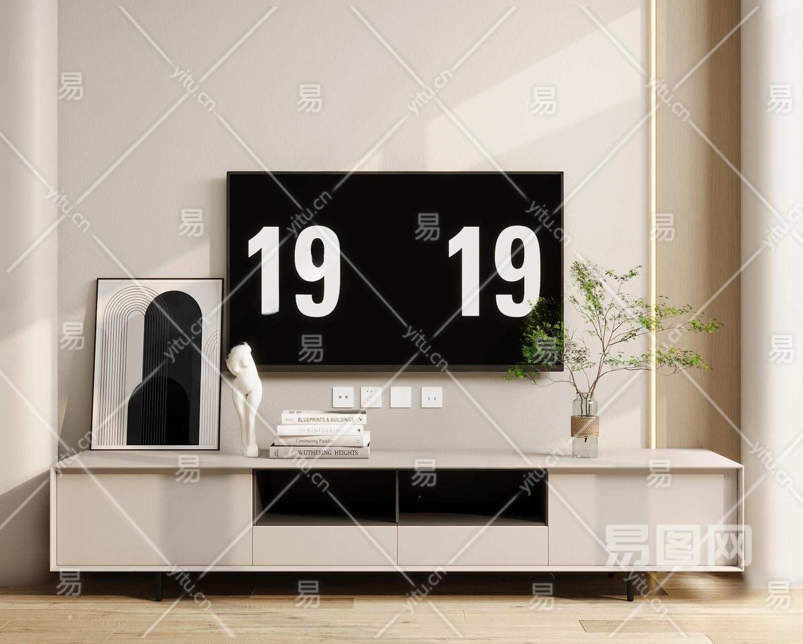 现代电视柜3D模型下载