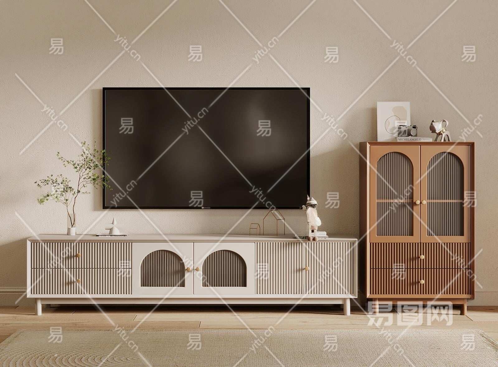 法式电视柜3D模型下载