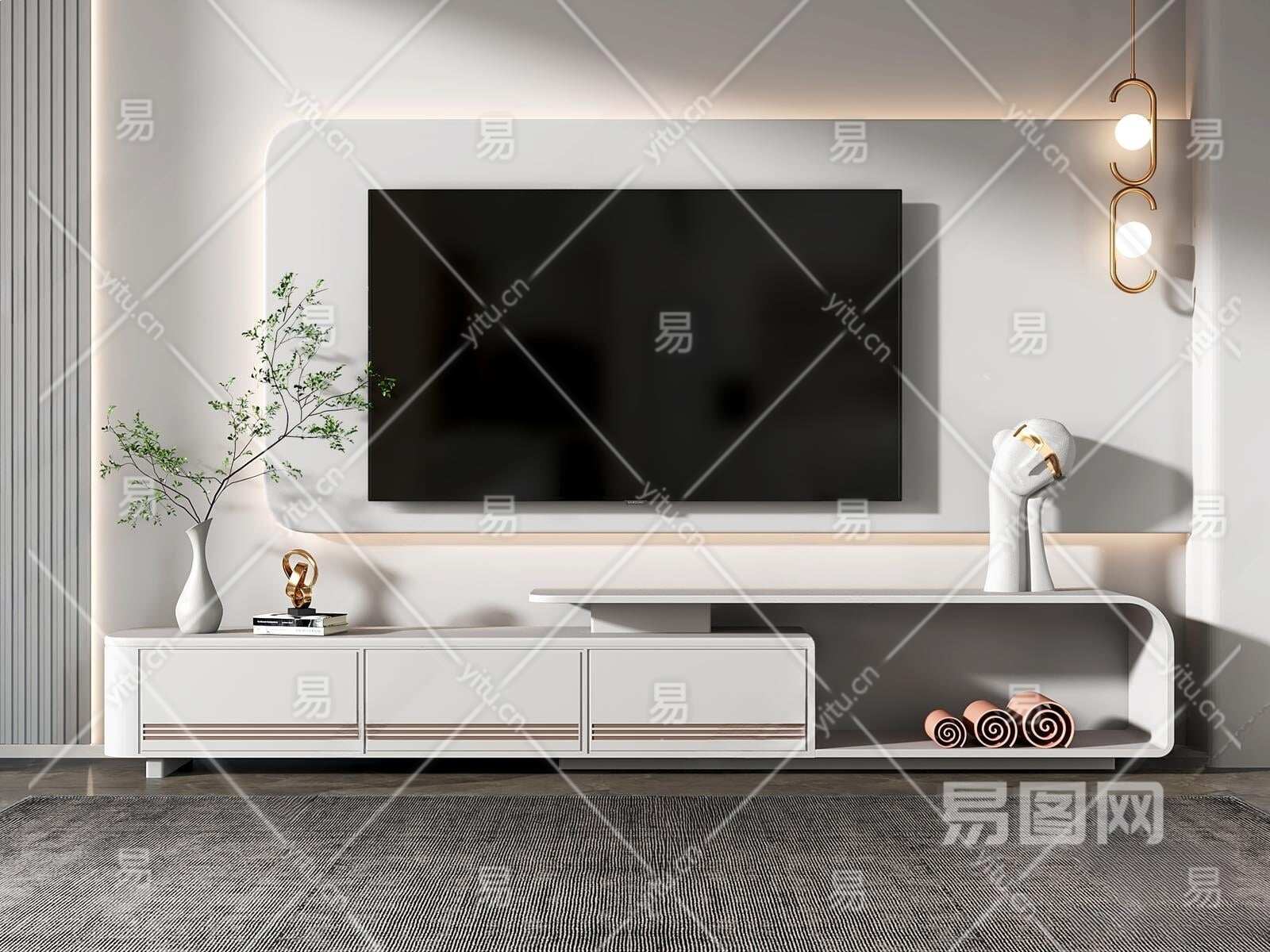 现代电视柜3D模型下载
